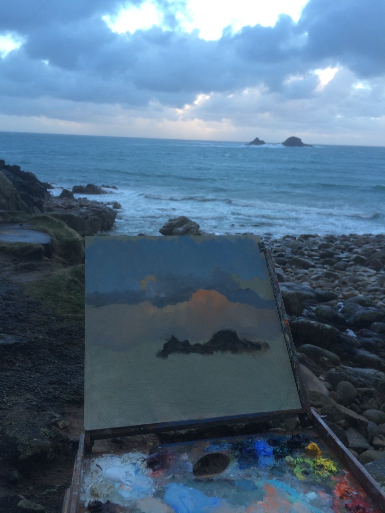 Painting The Brisons from Porth Nanven Published March 15, 2016 at 2448 × 3264 in To Hail and Back, a painting trip to Cornwall At Porth Nanven